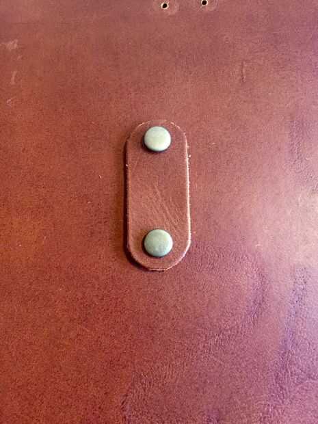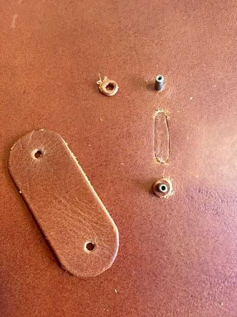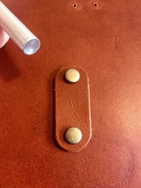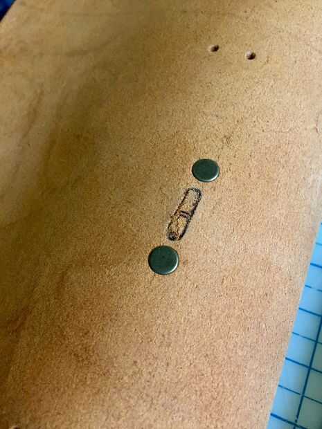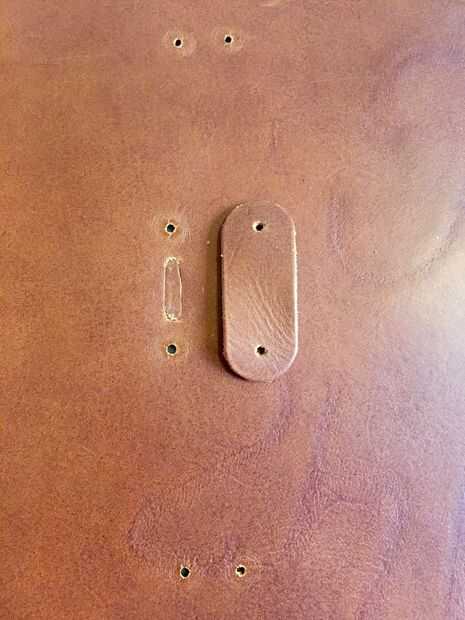 Para el cierre, primero tuve una idea diferente que por eso había hecho a este óvalo del agujero vea, pero que no funciona tan bien, así que tuve que cambiar a otra cosa. Es mucho más fácil y más bonito que lo que primero tenía en mente. Básicamente es sólo una pieza ovalada más grande de cuero que se sienta firmemente a la superficie y por lo tanto mantiene la solapa de cierre hacia abajo y cierre. Usted obtendrá una mejor idea viendo las fotos.