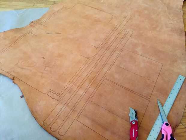 Ahora las piezas tienen que ser cortado del cuero. Había establecido el patrón hacia abajo y me remonta a todos. Al cortar las piezas he encontrado usando un cuchillo con hojas frescas mejor. Pasaron por el cuero con apenas presión.