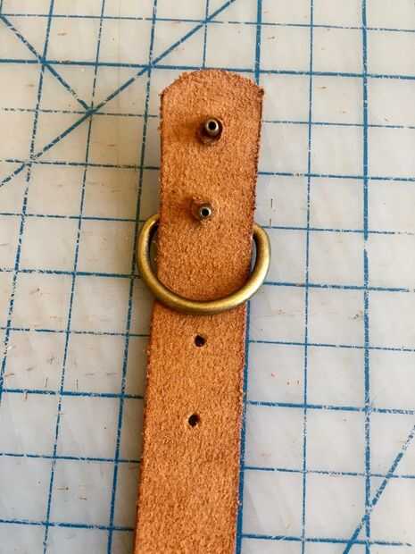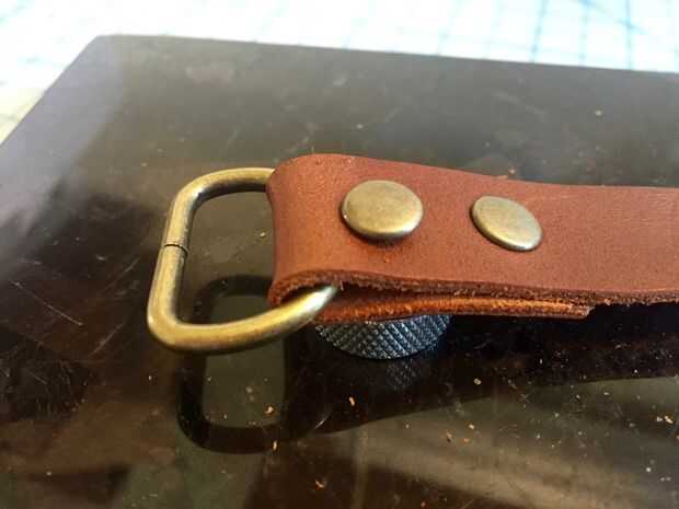 Comencé con las manijas del pedazo largo, que necesitaba el anillo en D adjunto. En retrospectiva, debo han dejado más espacio para el anillo en D para moverse.