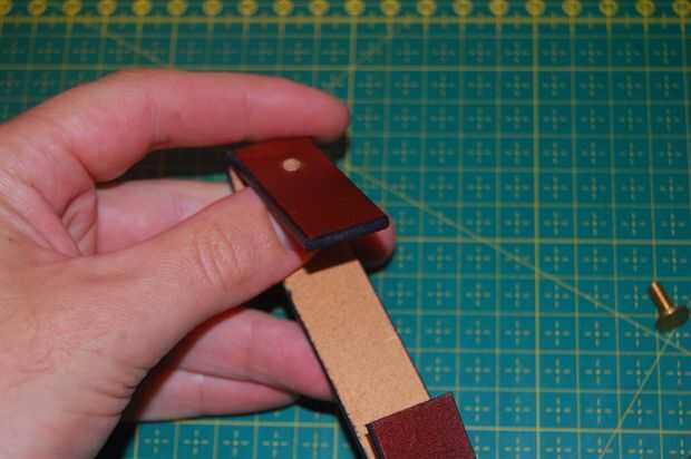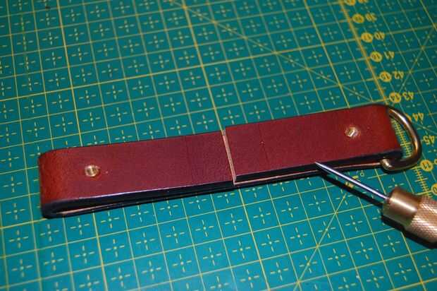 Con la correa doblada puede Inserte el tornillo para ayudar a mantener la forma mientras se seca. También puede recortar los extremos pero usted debe esperar un poco antes de cortar a la longitud final.