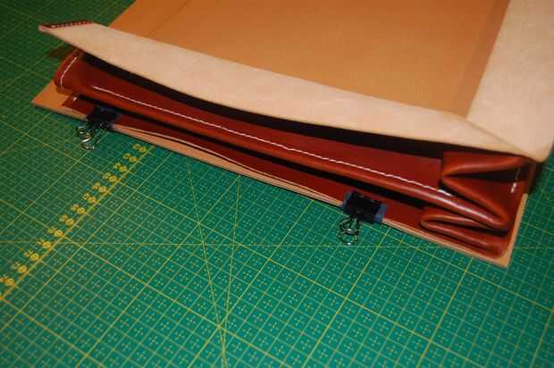 Remache de la cerradura en lugar usando la misma técnica que con la captura. Aplique cemento de contacto a la pieza de frente y cubierta de cerradura y pegamento en su lugar. Después de que ha secado se puede coser.