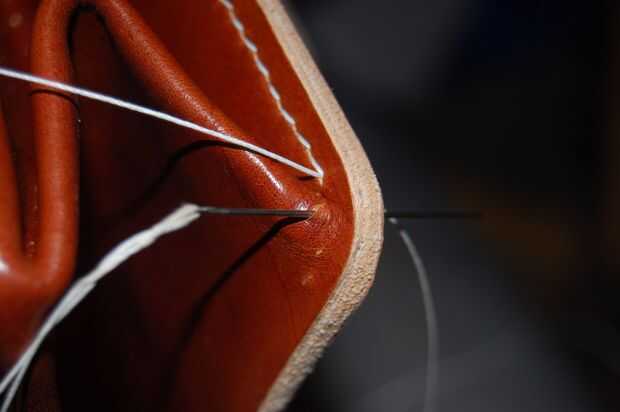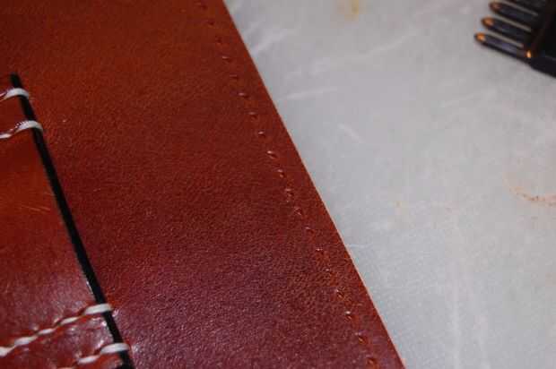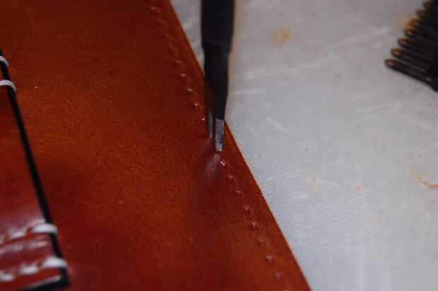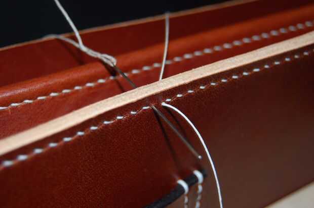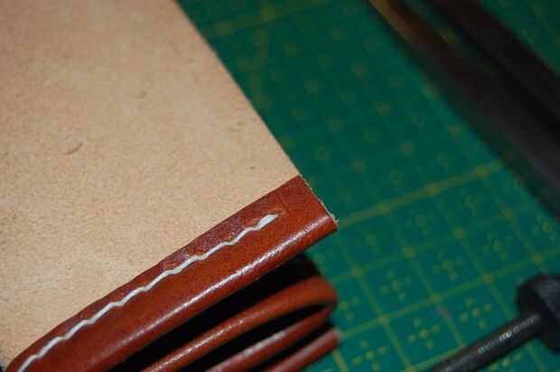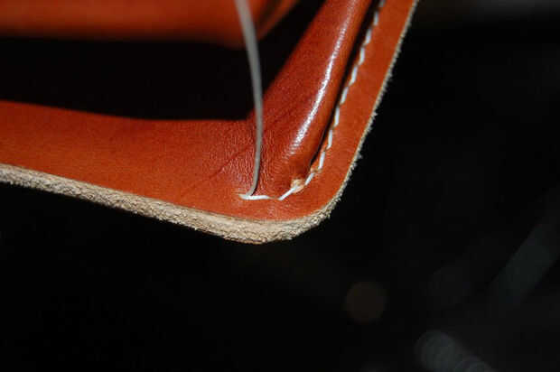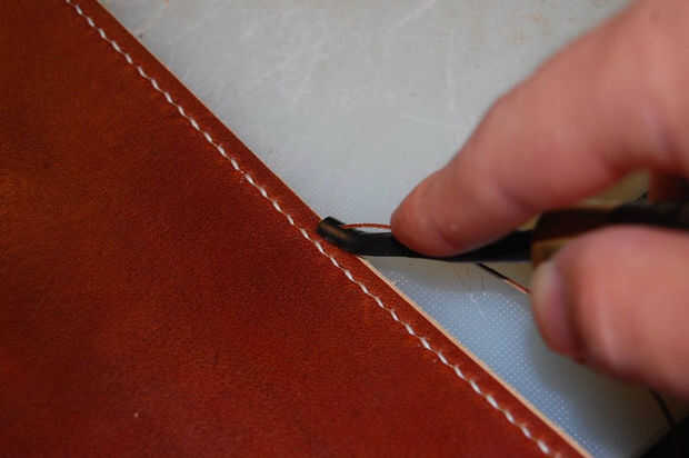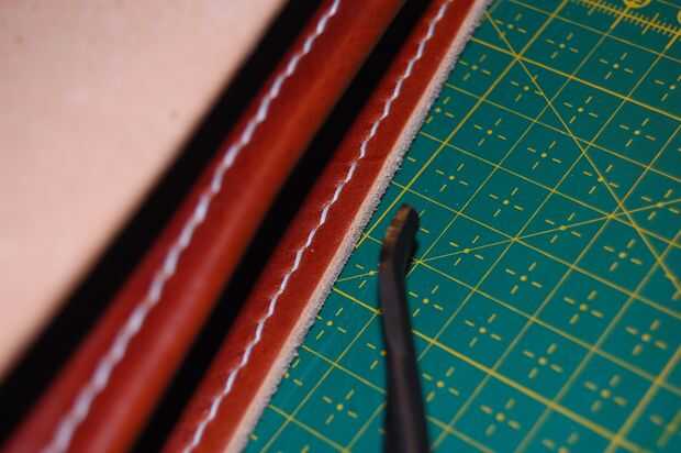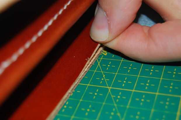 Cuando haya terminado de coser le puede biselar los bordes tanto delante como detrás y pulir los bordes.