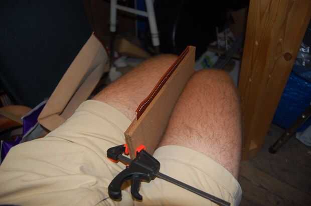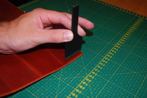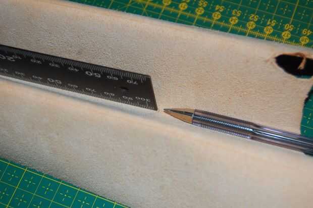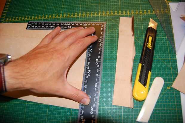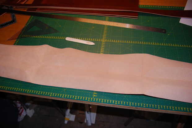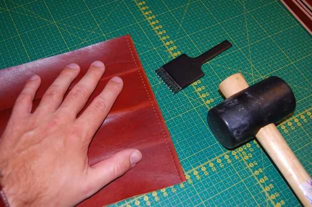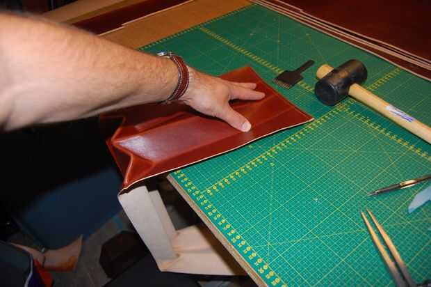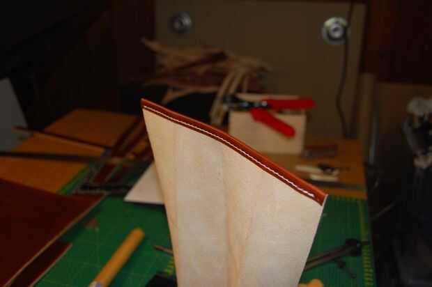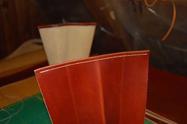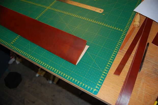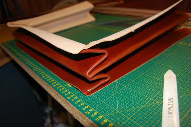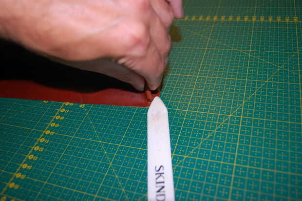 Cuando se haya secado el cuero puede cortar los extremos a la longitud correcta, doblarlas y coserlas. Cuando doblando los extremos recuerda mojar la línea de doblez para hacerlo más fácil.