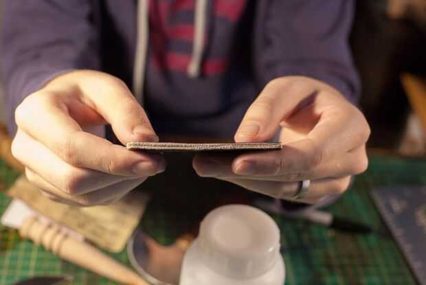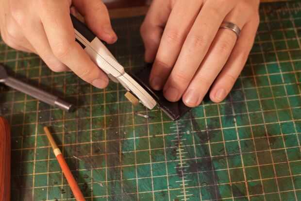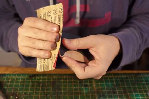 Ahora que la pieza se pega junto, compruebe los bordes. Si ellos no se alinean perfectamente, tómese el tiempo para cortar la parte sobrante con una cuchilla giratoria, x-acto o un cuchillo redondo. Si todos los cortes antes de esto fueron limpiamos, esto no será un problema, pero es fácil que esto suceda, así que no sudarlo si lo hizo. Si el exceso no es demasiado o no eso no sensible, lo corte. En su lugar utilizar 150 a nivel hacia fuera. De hecho, en este punto, debe golpear todos sus bordes con grano 150 para asegurarse de que están agradable y plana.