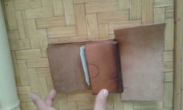 Trate de doblar y rodar el cuero y observar sus formas de cartera y vienen a la vida.
