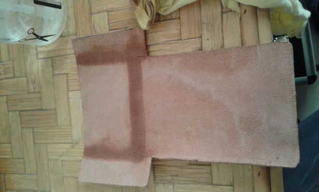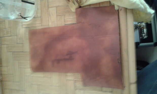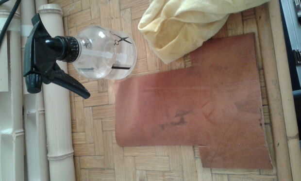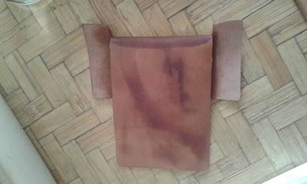 Ahora estamos listos para formar definitivamente el cuero, tan simplemente con agua.. .un poco de agua, mejor utilizar un paño húmedo que funciona bien. Después de conseguir mojado, tenemos que doblar.