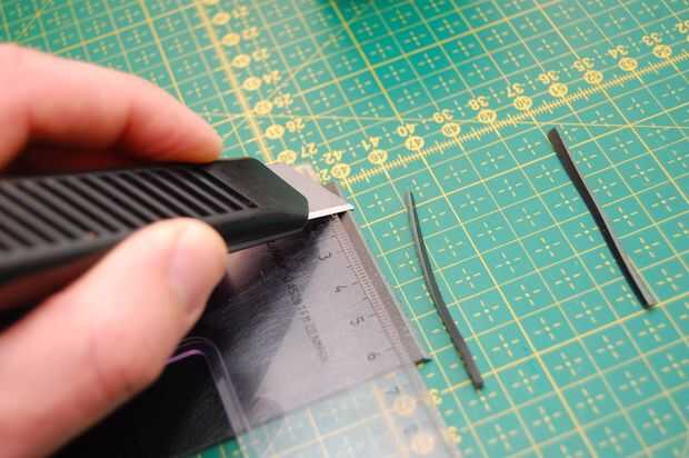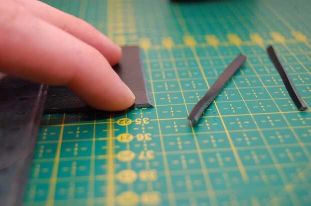 Al final de la escuadra se corta a un ángulo de 45 grados para hacerlas encajar mejor cuando cose.