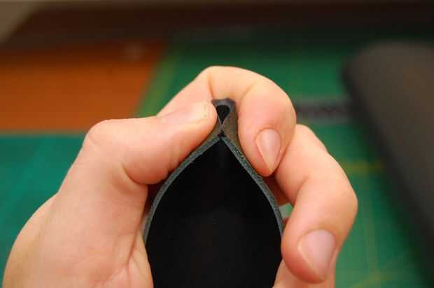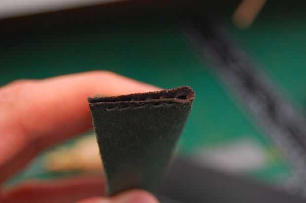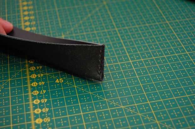 Hice una pequeña mofa hasta ver cómo funcionaría. Esto era una buena idea porque dos problemas aparecieron enseguida. No fue posible tener los dos extremos del encuentro del fuelle. No importa cómo duro he intentado siempre hubo una brecha. La única solución que pude pensar fue a coser el fuelle juntos pero tuvo que hacerse muy cerca del borde. Cuando compone una mofa de esto el cuero no rasgar aparte pero se mantuvo muy bien. La fuerza de cuero siempre me sorprende!