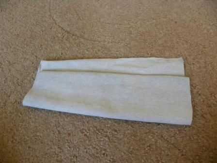 Doblar la tela por la mitad a la aleta (bueno, mira la foto.)