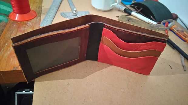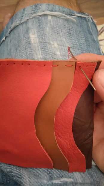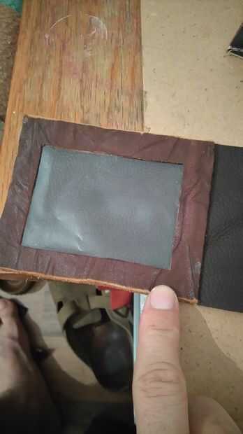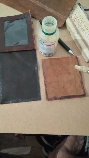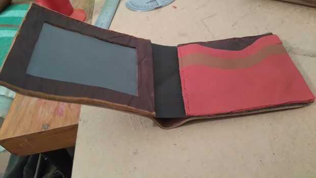 Finalmente para este paso, pegué la cara de la cartera hacia el interior parte y después de hacer todo eso pegado y costura, comienza a tomar forma snd me encanta.