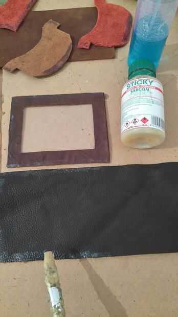 Marque el lugar en el pedazo de 9 por 10 centímetros donde la ranura piezas deben caber y difundir algun pegamento en ambos lados (eso es cómo funciona mi cola), ver las fotos.