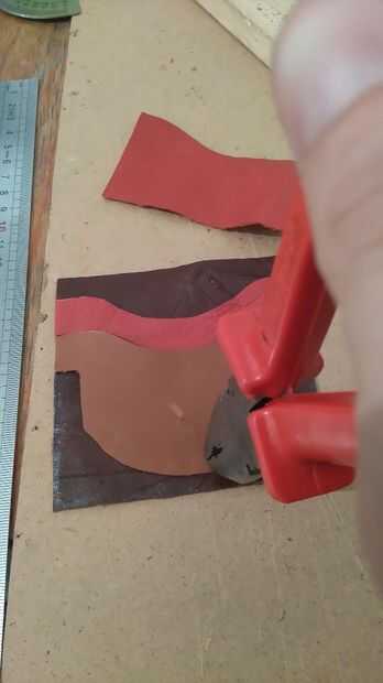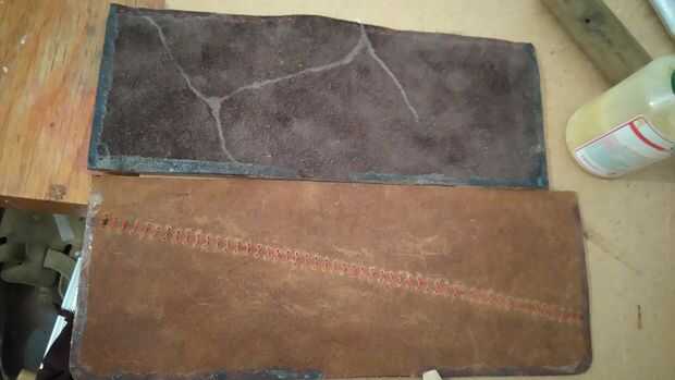 Cuidado cuando pegue las dos piezas de togever para marcar el lugar donde Únete y poner pegamento solo en esa zona. Pegamento cuidadosamente y usted debe venir también un resultado similar con las tres últimas imágenes, la parte media inferior de la pieza facial debe formar un bucle, esto ayuda en la funcionalidad de servicio de la cartera.