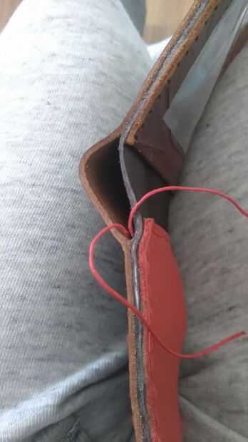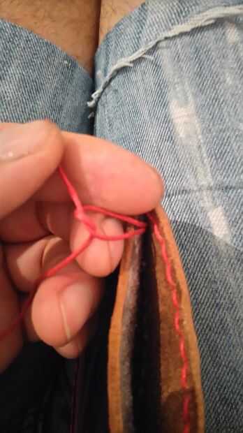 Ves cómo hice la costura en tres etapas separadas para no terminar con el hilo enredado y perder mi mente. Primero cosí los dos laterales en forma de ' L' en el mismo asunto como lo hice con el interior costura, pero siendo cuidadoso al volver con el hilo a seguir un patrón por lo que se ve aseada y oganizado. Puede se que en las fotos, coser en el stich existente y luego encima, debajo y en la parte superior, que hace que un patrón ligeramente diagonal.
