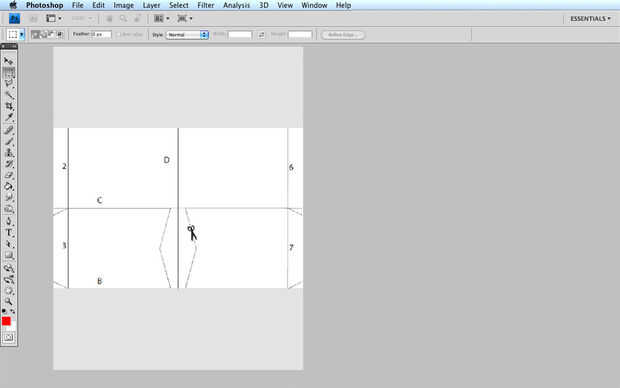 En dos separar las capas, que las áreas rectangulares de la parte superior e inferior del diseño de papel (ver foto) con línea "A" y "B" como su guía. La parte superior e inferior del diseño, una vez plegado será el "dinero" zona de la cartera de papel. (No visto desde el exterior).