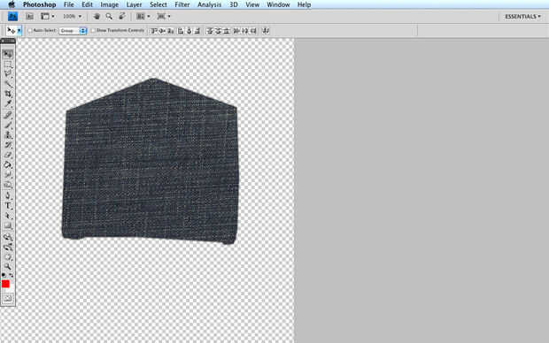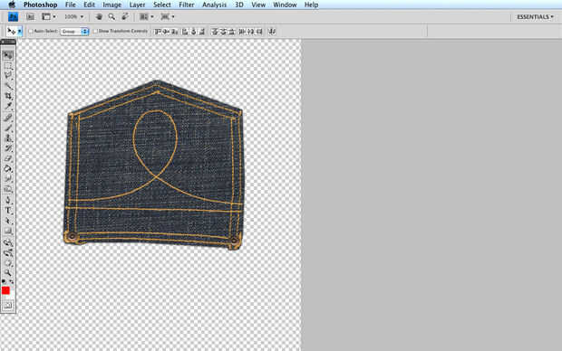 Puesto que el color del dril de algodón del bolsillo no es el mismo dril de algodón utilicé antes, tuve que cortar todas las áreas del dril de algodón, dejando sólo las costuras y remaches de metal. Entonces copié un área del mismo tamaño que el bolsillo de una porción de la impresión del dril de algodón que utilicé anteriormente. (ver fotos). Luego coloqué la capa costura sobre la forma de bolsillo. (ver foto). También quería la costura para mayor contraste y emparejar el logo, así que he añadido un efecto de color a la capa de costura. (ver foto).