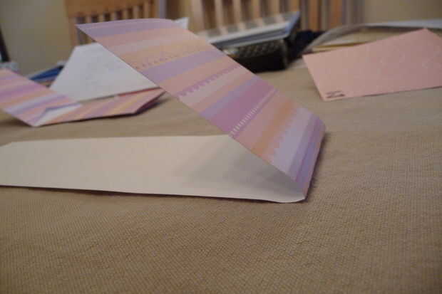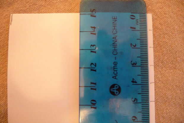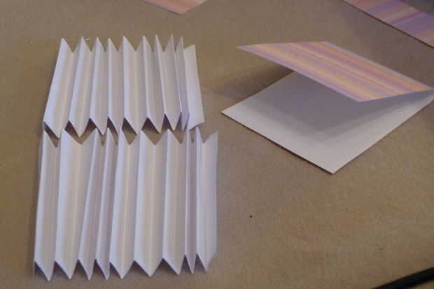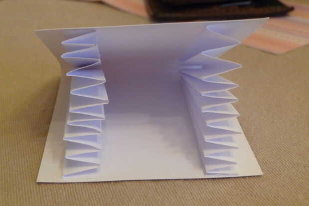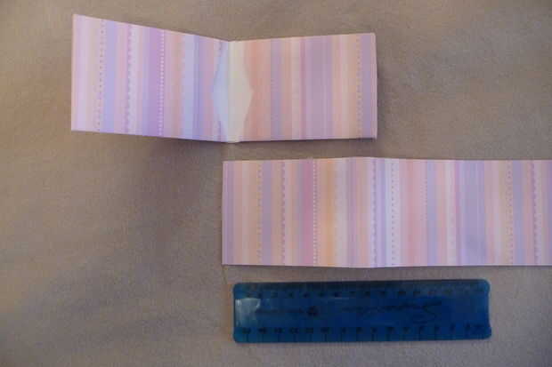 Al hacer las piezas de acordeón (las thingamabobs varias veces doblados), marque 8cm de ambos extremos del papel cuando tienes el papel de la forma de perrito caliente (paisaje). Están marcando desde ambos extremos por lo que para cada pedazo de acordeón, tiene un borde perfectamente recto. Cortar al tamaño adecuado y una vez que ambas hojas de 8 cm x 21.6 cm (8.5"), medir incrementos de 1cm y empezar a doblar.