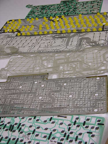Todos los teclados he abierto han utilizado una serie de pequeños tornillos Phillips para asegurar las piezas superior e inferior. Retirar y abrir el teclado. Probablemente hay una hoja de metal asegurada con tornillos. Quite los tornillos y fijar la hoja de metal a un lado para usar como un borde recto durante el corte. El siguiente es la hoja de circuito que debe ser muy fácil de quitar.