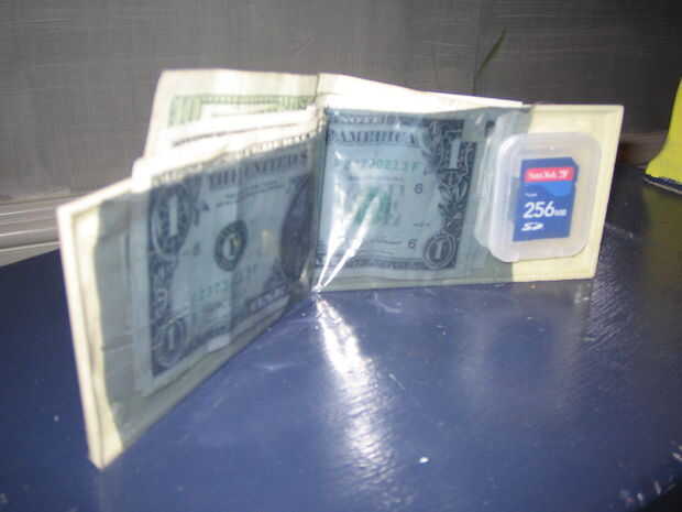 básicamente es una cartera hecha de un tubo de toalla de papel y cinta. (esta es mi primera entrada de instructibles así que por favor, estaría bien.)Paso 1: conseguir tubo de toalla de 1 papel, 1 pluma, cinta (paking y masking), 1 dólar (para la med