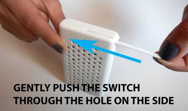 Ahora las otras dos partes y presione suavemente el interruptor a través del agujero plano que se encuentra en el lado de la tapa. Cuando llegue a su límite, perilla de plástico bloqueará la entrada. Entonces sólo empujarlo más difícil hasta que el mando pasará a través del orificio. Extremo del interruptor debe colocarse en la zona marcada en círculo en la foto.