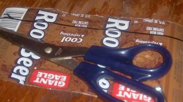 Viene otro paso simple es tomar una de las rodajas de la lata y cortar sobre una mitad de una pulgada de uno de los lados largos, este se unirá al otro lado para hacer la bolsa de dinero.