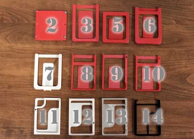 Diseñé una billetera con intenciones de venderla en Kickstarter y pasó por muchas versiones en mi impresora 3D (14 en total) para llegar a un diseño óptimo. Los archivos aquí no son copia exacta de mi versión final, ya que los que están hechos de metal, pero estos incorporar todas las lecciones aprendidas y funcionalidad.