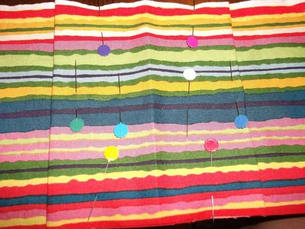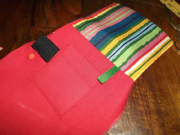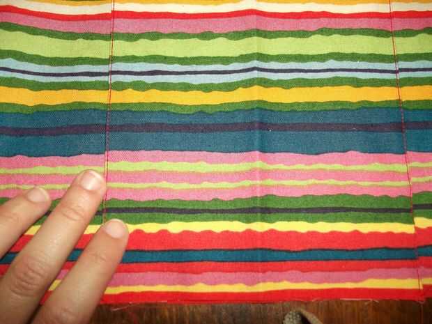 Refuerza la parte inferior de la exterior, porque esa es la parte puede tomar algún abuso. I cortar un rectángulo de exra, presiona los bordes bajo, prendida a mi bolsa tela y topstiched en lugar.