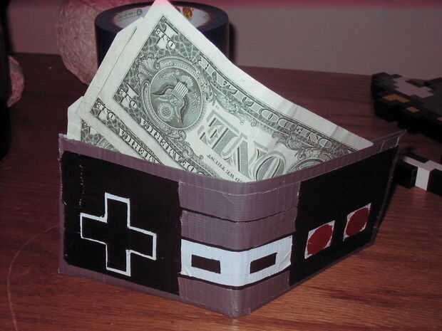 se trata de una billetera de papel basada en el hecho por theRIAA y reforzada con cinta adhesiva. También hay incorporaciones como una ranura de tarjeta de memoria y caso de ID. También puede improvisar sus propio adiciones, que es un paso superior d