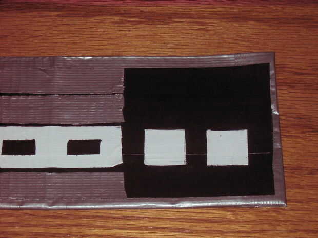 Coloque los círculos rojos en el centro de los cuadrados blancos. Luego quite la parte NES despegando la tira negra grande, reservar para su uso posterior. (ver foto)