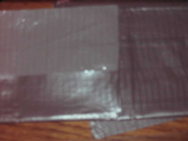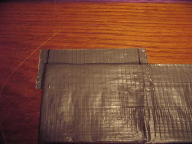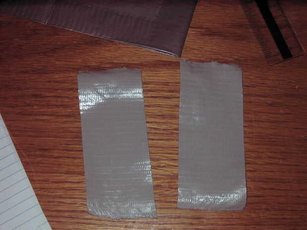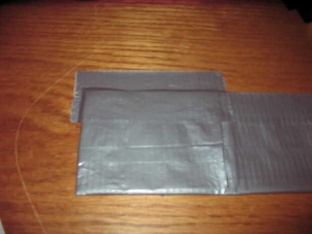 primer corte/corte 2 tiras de cinta que son 4 1/2 pulgadas de largo, por superponerse sobre una 1/2 pulgada. Para ser un poco menor que la mitad de la cartera y se los ponen lado pegajoso hacia arriba en cartera. (ver fotos)