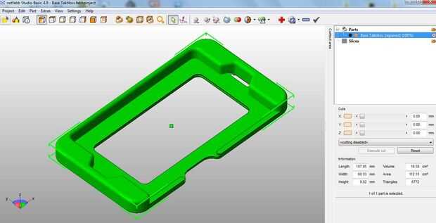 Nota: el archivo está preparado para que la cara frontal está en la impresora. Puede ver la captura de pantalla de Netfab y ver la orientación del icono de eje en relación a la pieza. Dos razones para esto. Uno, que impresión y ensuciarse la capa inferior sólo un poco, rinde un vaso como frontal liso. Dos, esta orientación parte elimina los grandes voladizos.