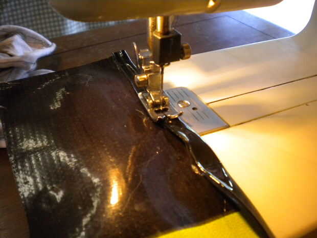 4) doble tina exceso sobre vinilo. Tack. coser el doblez.
