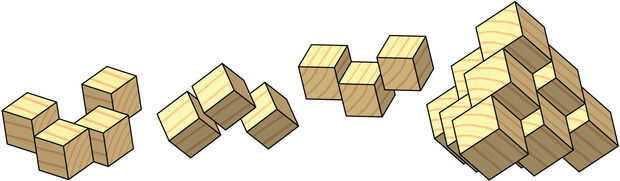 Este rompecabezas de tres piezas es engañosamente difícil de poner juntos, incluso si tienes una foto del resultado final al trabajo de. También es difícil unir las piezas con precisión. La mejor manera de hacerlo es cortando algunos bloques espaciadores que son exactamente la mitad tan gruesos como los cubos que el rompecabezas debe ser construida de.