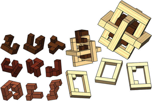 No solo hay 24 formas de orientar un cubo dentro de la jaula (sólo uno de los cuales funcionará) pero muchos movimientos de desplazamiento de la jaula tres componentes son necesarios para realmente obtener las piezas del cubo en el interior, que por supuesto debe insertarse en un orden específico. De los tres cubos que se muestra a continuación, la fila superior es relativamente fácil de poner en marcha, trabajando a la fila inferior, que es relativamente difícil. (Nota: los componentes de la tres jaula deben pegados en su lugar ya que hay no hay manera de separarlos una vez montado)