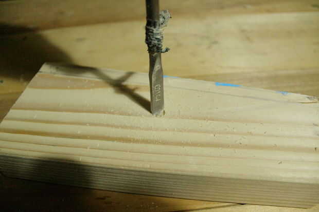 Yo uso la espada de 3/8 pulgadas del pedacito. En primer lugar profundizar directamente en la madera alrededor de una pulgada 1/8 luego suavemente empezar a inclinarse el taladro a una voluntad de ángulo manteniendo la presión sobre la broca y manteniéndola girando todo el tiempo. Una vez alcanzado el ángulo deseado, aplique más presión en la madera hasta alcanzar la profundidad necesitada. El agujero puede ser un poco desordenado en la parte superior pero esto ha funcionado para mí muchas, muchas veces sin ningún problema real. Tenga cuidado de no usar demasiada presión o el ángulo de perforar demasiado rápido o la broca puede romperse.