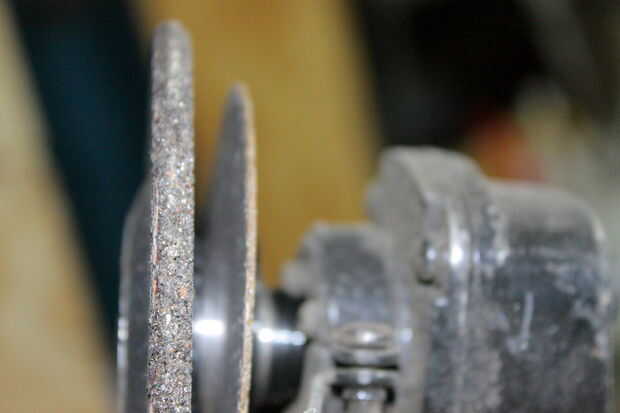 Otra vez esta fue cuando estaba poniendo tornillos de bolsillo al dedo del pie presionado 2x4s a una base y la cabeza del tornillo atascada hacia fuera de cerca de 1/4 pulgada. Sobre la parte superior de los tornillos que necesitaba poner una pieza de contrachapado. Batida a la amoladora y el vino de la cabeza. Problema resuelto mediante una herramienta que tiene poco uso en una tienda de madera. (Foto 4) muestra también la diferencia entre una rueda de esmeril y un disco de corte para amoladora. La rueda de corte es mucho thinner(Right) que la wheel(left) pulido