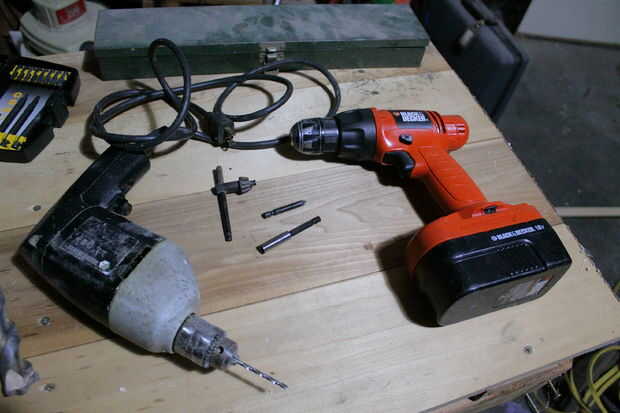 Para trabajar la madera a un lado, cualquier persona que planea tratar de DIY, la vida será más fácil con un taladro. Esta fotografía muestra dos taladros. Uno es batería accionado el otro con cable. Prefiero el cable ya que la mayoría del trabajo está en la tienda. Cordones de extensión de ser engorroso pero mucho menos molestos que las baterías débiles o muertos. Punta: Si el conector está suelto y sigue saliendo desconectado, haga un nudo con dos cables y no se tire.