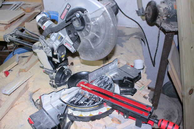 La foto de Sierra para cortar ingletes se conoce como una sierra de inglete compuesto diapositiva 10 pulgadas. Tiene una cuchilla de 10 pulgadas y el cabezal de corte entero puede deslizarse unas 12 pulgadas más adelantadas. La hoja puede girar y bisel para cortar ángulos complejos, conocidos como cortes a inglete. Esta uno herramienta Ahorre horas de tiempo para realizar cortes en cualquier pedazo de madera que quepa en él. Pueden cortar incluso ligeramente grandes piezas de madera contrachapada (hasta 28inches) si se corta lo más lejos posible de un lado, luego Dale la vuelta para cortar el resto. Esta es la herramienta que me inició en trabajos en madera. Hizo mucho más fácil cortar que trabajo de madera pasó de una difícil tarea peligrosa a un pasatiempo agradable.