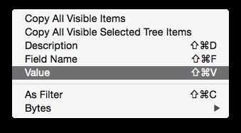 Otra vez me filtro en "dns" y cuenta una solicitud de un registro AAAA para www.apple.com (IPv4 está siempre en busca de un registro, IPv6 está en busca de un récord AAAA). 2 captura de pantalla muestra que hay una respuesta de IPv6 para www.apple.com recordar una dirección IPv6 es demasiado dura, así que copio la dirección IPv6 en el copiar/pegar búfer clic derecho sobre la línea, haga clic en "Copy" (imagen 3) y haciendo clic en "valor" (imagen 4).