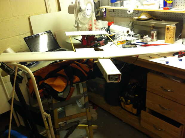 Para las pruebas usé un motor de 2200Kv con un 6 x 4 y unos pequeños servos. La ESC era un rey Hobby 40A. La versión final probablemente tendrá un 1100Kv y un apoyo mucho más grande.