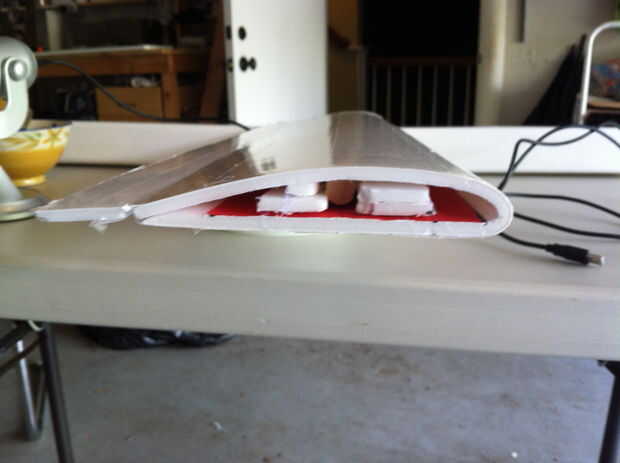 este es un modelo pequeño de un drone UAV que he creado de sólo una pieza de aluminio fino de una lata de soda. Se trata de una pulgada de largo. Latas de refresco son un material favorito mío porque son gratis, fáciles de trabajar con y respetuoso