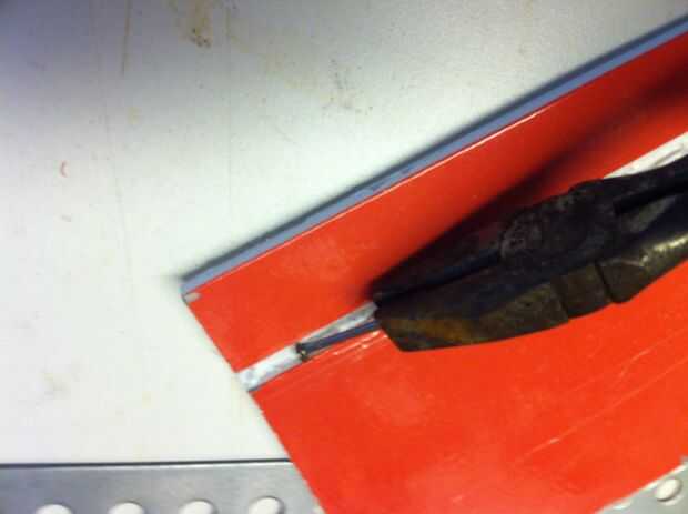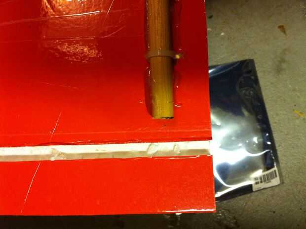 Voy a utilizar una superficie de control de 1 pulgada por lo que anotó una sección de 1/4 de pulgada de la bisagra. Lo hice por rayas, papel y cinta y utilizando un clavo caliente para derretir lejos la espuma. El aparato resultante fue una bisagra muy fuerte pero flexible. También puede cubrir el borde con cinta adhesiva y cinta en la articulación.