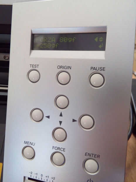• Senza spostare il foglio di cartoncino, ajustes de il de imposta por tagliare la caja su cartoncino del peso di 300 gr - Direttamente sulla GX-24 vai su menú, clicca FRECCIA en GIU, seleziona masa, poi clicca FRECCIA A DESTRA e scegli FORZA, setta su 250gf, velocità 3 cm/s OFFSET resta 0,250 mm poi conferma con ENTER