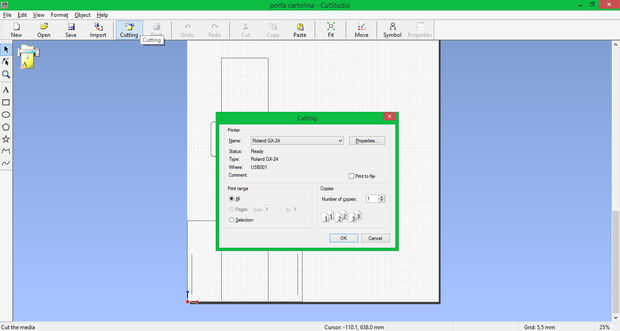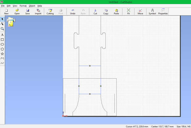 • Ora seleziona gli elementi gráficos delle pieghe en CutStudio e poi clicca su corte por procedere con l'incisione