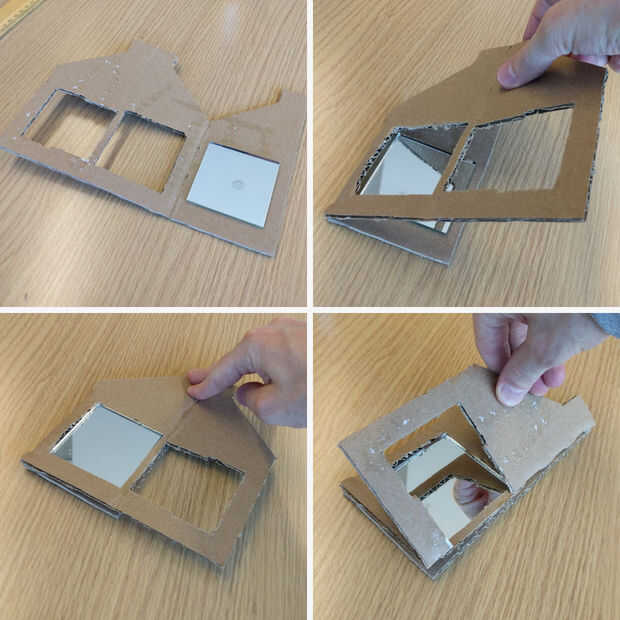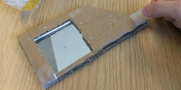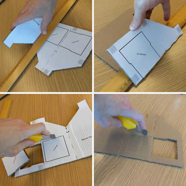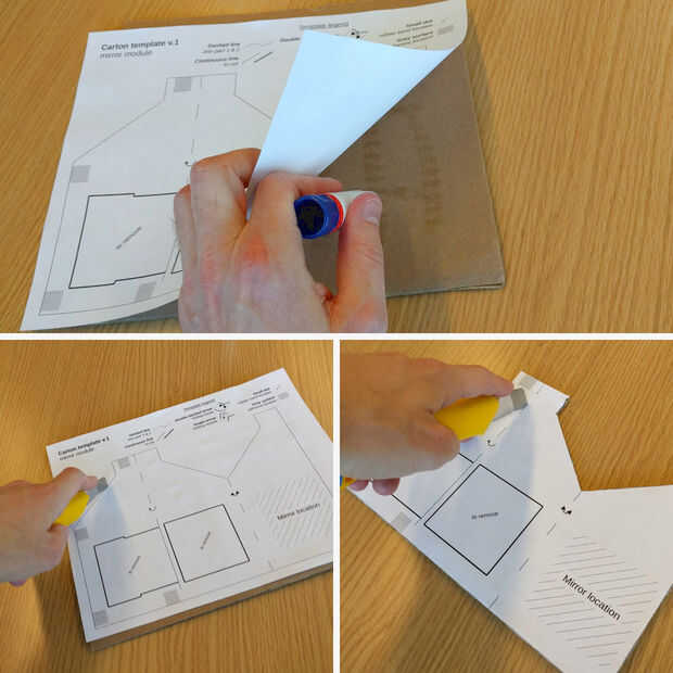 - Pegar el proyecto módulo de espejo a la más pequeña pieza de cartón