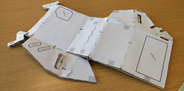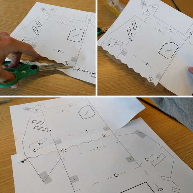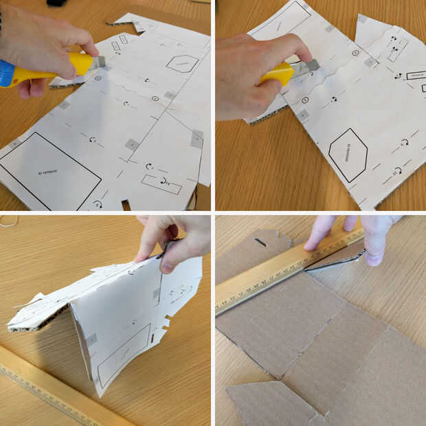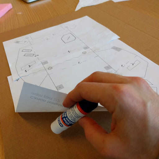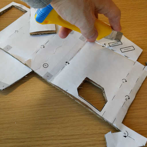 - Pegar el plano completo de la última pieza de cartón (la más grande)