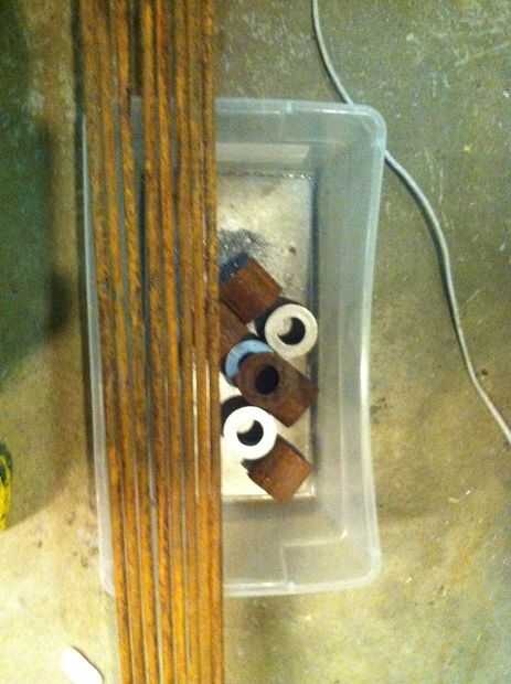 Primero, corté un montón de piezas cortas de tubo.  A la derecha aproximadamente 1 1/2" de largo.  8 para ser exactos.