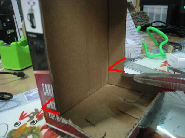 Foto #2: Líneas rojas son las líneas plegables. LUZ corté la línea de fondo desde el interior.