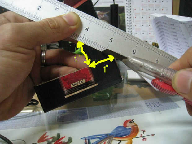 Foto #1: Medir una pulgada en las líneas amarillas, luego se corta la luz diagonal.