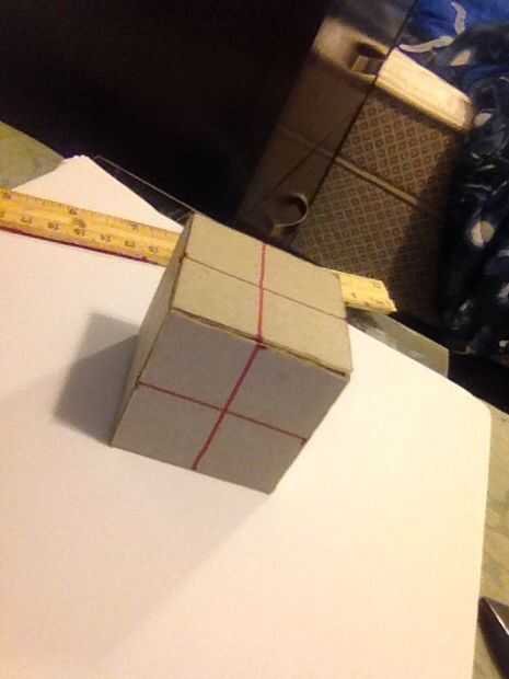 En primer lugar, agarra tu regla y encontrar el punto medio de cada lado en su cara superior. Utilice estos para dibujar dos líneas que se cruzan y repetir este proceso en los seis lados, como se muestra. Ahora, utilizar estas líneas como guía para pegar en tus círculos y rectángulos. Tomar todas sus rectángulos y convertirlos a un paisaje (lateral) vista. Marcar una línea recta por el centro de cada uno y doblar cada pieza por la mitad. Esto hará más fácil envuelva los rectángulos alrededor del cubo de modo que encajan perfectamente en el lado limpio de la caja. Pegar los círculos en el centro de todos los rectángulos. te recomiendo hacer los círculos después de las semi-plazas para asegurarse de que estén centradas en cada cara.