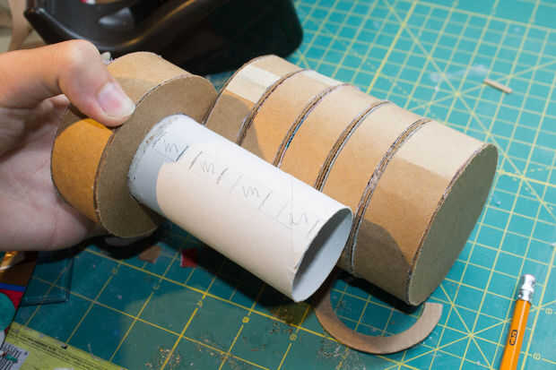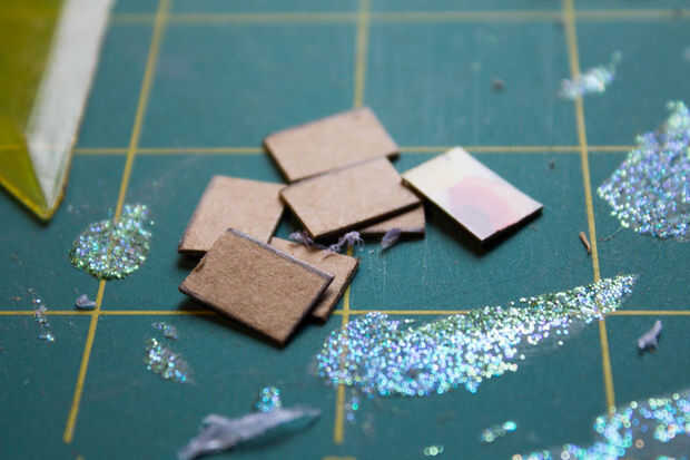 Necesita 8 rectángulos de cartón de 13x9mm a construir los 4 dientes.